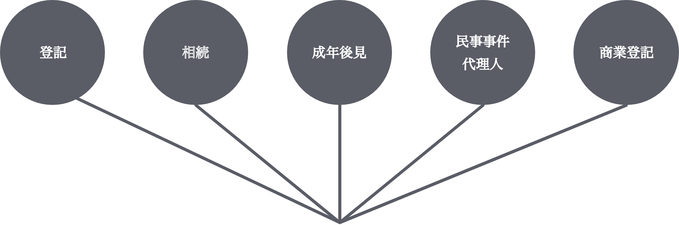司法書士は、登記業務、相続・成年後見業務、身近にある民事事件を代理人として解決する裁判業務、商業登記などをおこなう法律の専門家なのです。また紛争を未然に防ぐ予防型の法律家であるとも言えます。上記の専門業務の以外にも、他の士業法で独占されない付帯的におこなうことができる業務が多数あります。